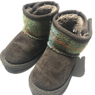 ムートンブーツ ハリスツイード 茶色 14センチ