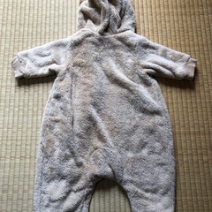 くまさんの格好のカバーオールです。肌寒い季節(秋〜初夏前くらい)に活躍します。寝巻きとして動きの活発な乳幼児に適しています。