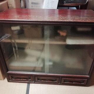 古い戸棚です。ガラス引き戸になります。アンティーク調です。
