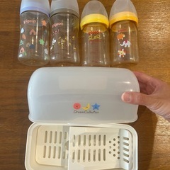 ピジョンの母乳実感4本とレンチン消毒のセットです。