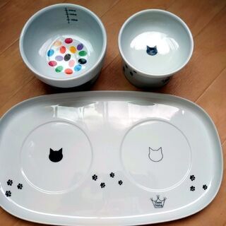 猫壱 ハッピーダイニング 脚付 フードボウル ウォーターボウル 食器トレー 3点セット