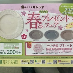 おかやまキムラヤの春のプレゼントフェアのシール、2.5点分ですが集めてる方がいらっしゃたら差し上げます😋