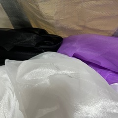 シフォン生地や裏地、チュチュなど制作用の少しかたいめの生地など色々あります。
