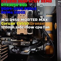 【新品多数】自作ゲーミングPC Ryzen5 3600 RTX3050 DDR-3200 16GB NVMe M2.SSD 512GB Corsair電源550W Bronze