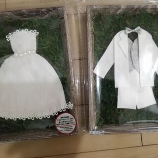 1.2L判のフォトフレームにフェルトとビーズで作った新郎新婦