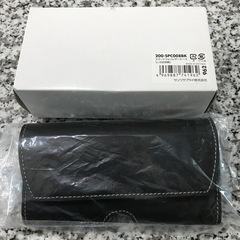 新品未使用、箱にスマートホンレザーケースと書かれています。ベルトに通すような物が裏についていてスマートホンが二台入るような形です。