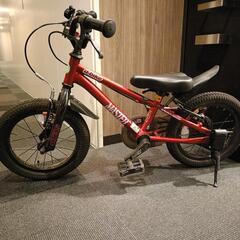 赤い子ども用自転車、4-5歳向けのサイズです。