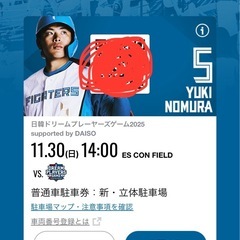 11.30エスコン駐車場券 日韓ドリームプレイヤーズゲーム