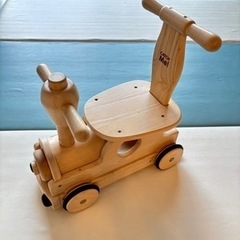 1台2役で長く使えます。丈夫で長持ち。やさしい天然木の手触り。押し手は着脱式なので、押し車としても足けり専用車としてもお使いいただけます。エアーフォンつきでクラクションが鳴ります。
