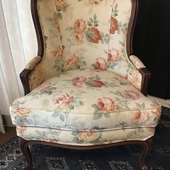 このアームチェアは、エレガントなフラワーパターンの布地で覆われており、インテリアに華やかさを加えます。