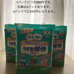 新品未開封の紙パンツ用 尿取りパッド ライフリー 大人用です。