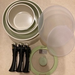 セラミック鍋 IH 10点セット 取っ手がとれる ハンドル3本付き アイリスオーヤマ キッチンシェフ グリーン