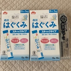 未開封の粉ミルク2箱と、はぐくみ専用スプーンと、はぐくみエコ楽パック用ケース(中身は含まれません)のセットです。