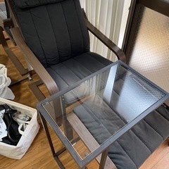 IKEA3点セット ポエングチェア、オットマン、ガラスサイドテーブル