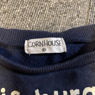写メの通りに紺色のトレーナーは80サイズ、ちょっと白っぽいグレーは60〜70サイズです。