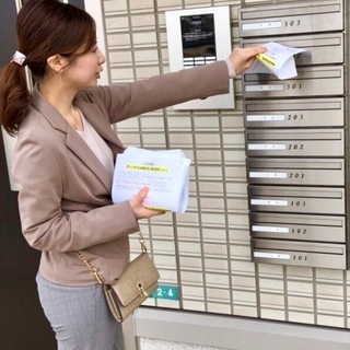 指定されたマンション等のポストにチラシを投函。現場では徒歩や自転車で配布します。最初はマンツーマンでリーダーが同行いたします。