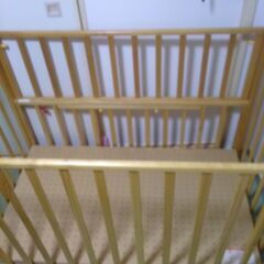 商談成立しました。リサイクルショップで買ったベビーベッドのライトブラウン色