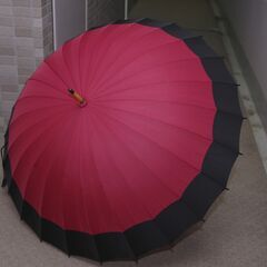 柄は木製、骨はアルミ(と思われる金属)、生地はナイロンです。