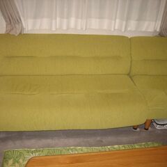 5年位使用した3人用ソファーで目立った汚れ等は無いと思います。色は黄緑色系統です。サイズは2人部分は横幅1300奥行750です。コーナ部分は横幅750奥行750です。車で乗せて取りに来てくれる方宜しくお願い致します。