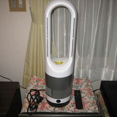 1回試しに動かしただけの新品の羽根の無い扇風機で送風ろ温風の2種類の機能が付いています。送風は8段階で温風は3段階です。首振り機能とリモコンで作動できタイマー機能付きです。大きさは高さ55センチ幅15センチでコンパクトですので机の上でも良いと思います。取りに来てくれる方お願い致します。