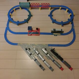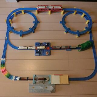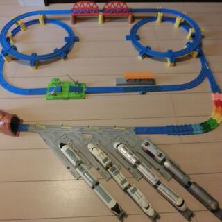 商談中⑮大量レイアウトセット 複線、大鉄橋、駅X2、車両4編成付 プラレール
