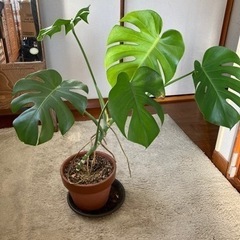 高さはおよそ70㎝、一番広がっているところの横幅は90㎝、一番大きな葉は30㎝、現在5枚の葉がついています。