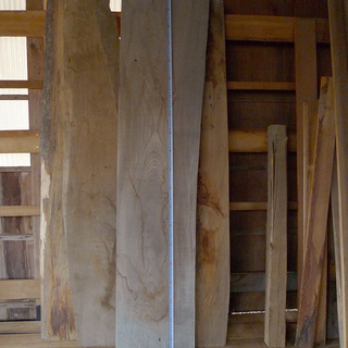 そのままテーブルの天板に使えるものから、ゆるい雰囲気を楽しむアイテムに加工したくなるものまで、写真の他にもいろんな樹種・サイズの板が沢山あります。