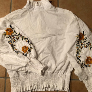 両袖に花の刺繍があり、首元や手首がフリルになっていて袖がバルーンでとても可愛いです♪
