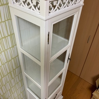 おしゃれな白色のキャビネットです。インテリに向いていると思います。10年近く利用したので、細かな汚れや傷はありますが、大きな破損は無く、実用上問題ないと思います。