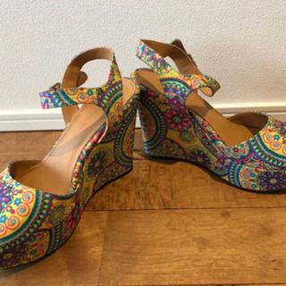 カラフルなお花柄 ウェッジソール 24.5〜25cm