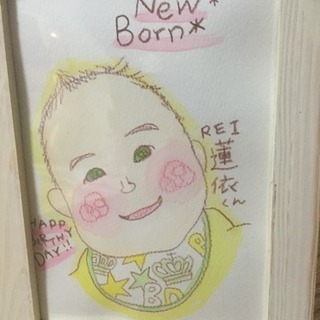 出産祝いに*リビングに飾れるオシャレ似顔絵
