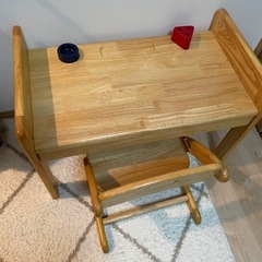 2年前に1万円で中古で購入しましたが、2.3度使ったのみでほぼ使用せず保管しておりました。椅子も机も高さを調整できます。