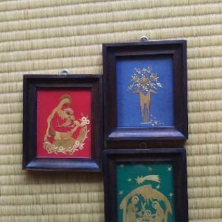 木製壁飾り3点 スロバキア製 13cm×11cm