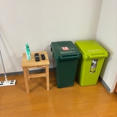 ゴミ箱2つとイケヤの椅子3つ