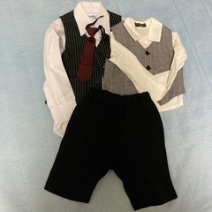 チェックのベストとワイシャツはどちらも90サイズです
