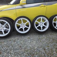 スイフトスポーツに装着していましたが、高速道路に落ちていた角材を踏んでしまい、右側2本のホイールが、歪んでいます。タイヤも、2本パンクしています。