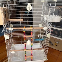 巣箱、水遊び場、ハシゴ付き、爪とぎ、とまり木2本付いてます。