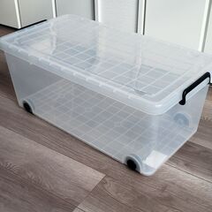 透明、キャスター付きで蓋をする形です。