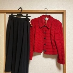 レトロな赤のスーツ(ジャケット、ロングスカート)