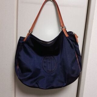 5~7年くらい前に購入したものだと思います。素材はおそらくナイロン。小さめですが、底が広めなので結構入ります。内ポケットはありませんが、全面に3つポケットがあるので、細々とした物を入れるのに便利です。サイズは縦およそ36㎝ほど横およそ31㎝ほど。