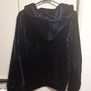 色も深めのネイビーで、ベロアっぽい光沢があるので、フリースですがラフすぎずきれいめに見えると思います。