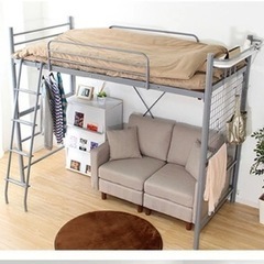 形は掲載写真をご参考にお願いいたします。現物ではありません。ソファなど付属いたしませんのでお間違えなきようお願いいたします。ロフトベッドのみです。お色はシルバーです。