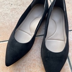 【中古】ユニクロマシュマロタッチパンプス ローヒール 黒 スエード 24.5cm