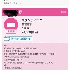 8/3にa子さんのライブに行く予定でしたが別の用事で行けなくなったので3700円でお譲りします。チケットはemailかlineで分配出来るようです。eプラスのアプリを登録する必要があるようです。正規の値段は4800でした。会場はクラブクアトロ梅田、会場17時、開演18時です。