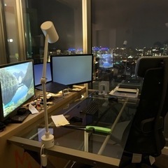 ワーキング用のガラスデスクです。現在は引っ越しに伴い組み立てが必要な状況です。新しいデスクを購入したため売りに出しております。ご希望の方がいらっしゃればメッセージください。