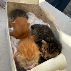 3匹は元気ですが1匹が少し危ない状況なので病院へ4匹とも連れてきます。産まれて数時間でミルクを少し飲ませたら元気になってきました。