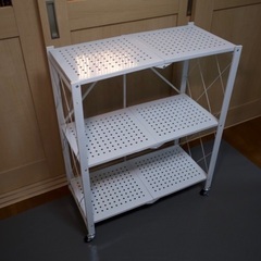 丈夫なメタルラックで、使わない時等は、コンパクトに畳むことができます。