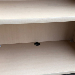下の棚にケーブル通す用の穴があり、棚板の奥も隙間があって上段までケーブルを持ってこれます。