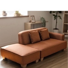 【お話し中】アイリスプラザ ソファ 2人掛け カウチソファ 幅110cm オットマン クッション2個付き