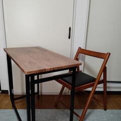 山善 RPST8040H 折りたたみデスクと、不二貿易の椅子のセット(バラ売り可能) ブラウン 木目調 desk&chair